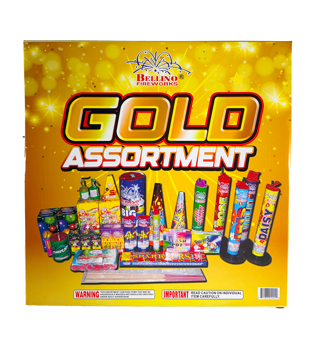Bellino Gold Assortment – A premium mix of Diwali favorites! Packed with sparkling flowerpots, colorful fountains, bright sparklers, and fun ground effects — everything you need for a night full of light, color, and celebration.